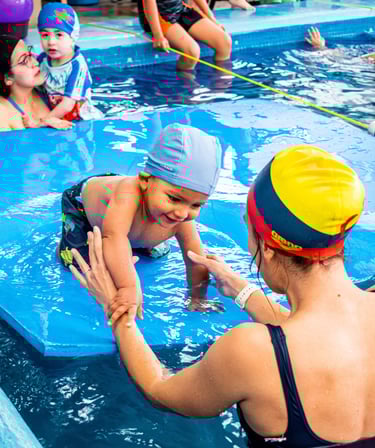 Clases para bebés de 7 meses a niños menores a 3 años, acompañados por mamá o papá. Fortalecen el vínculo, la confianza y la seguridad en el agua mediante estimulación acuática guiada.